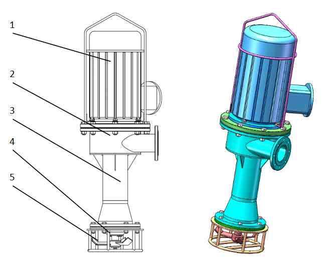 泵下部鉸刀對介質進行破碎、攪拌并推送進入吸入腔,通過吸入腔內的螺旋推進器將介質輸送至排出腔,排出腔內葉輪對介質進行加壓輸送入管道。